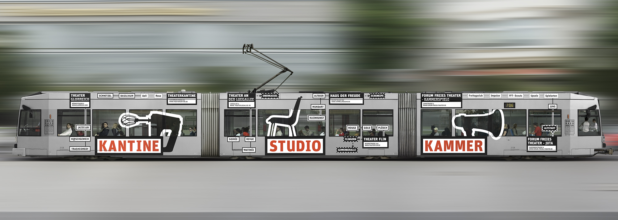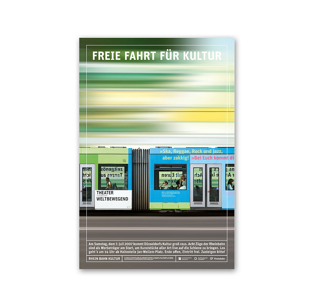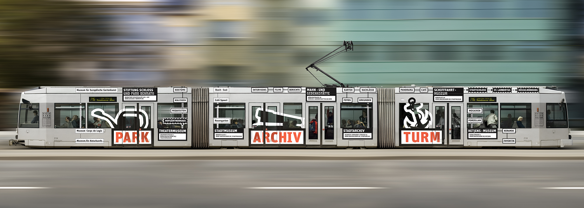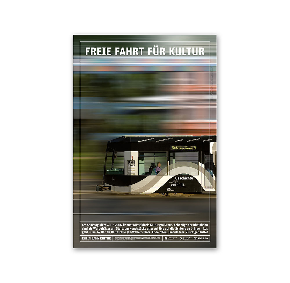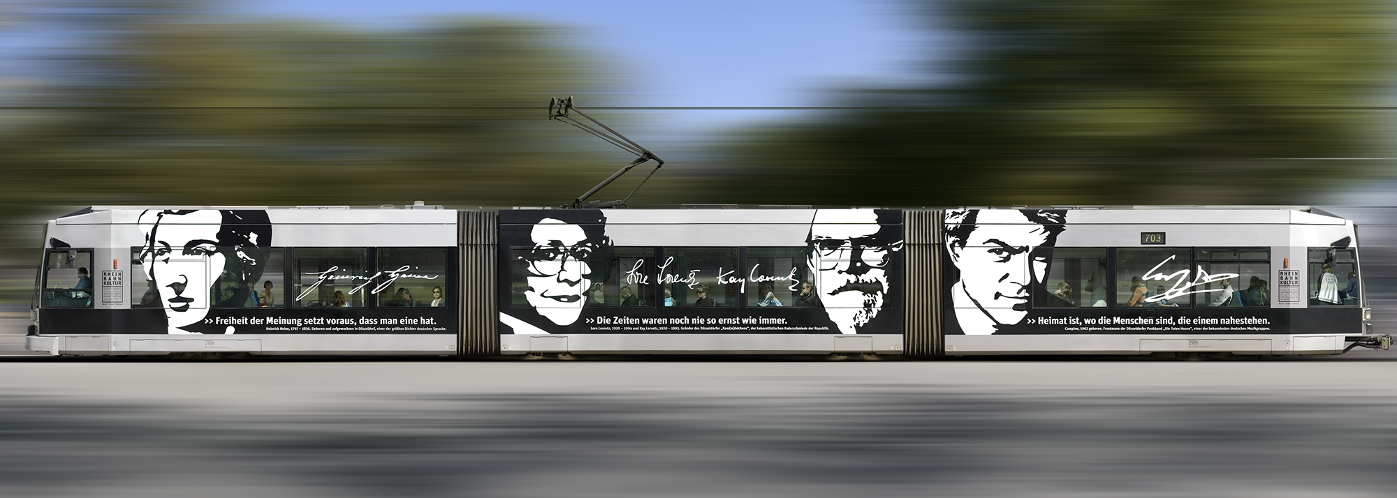 Und weil die Phantasie der Studierenden so vielfältig ist wie das städtische Portfolio, geht nicht nur ein Sieger aus dem Wettbewerb hervor. Insgesamt werden vier verschiedene Werbelinien realisiert, die unter dem Label RHEIN BAHN KULTUR gemeinsam Reklame fahren.
