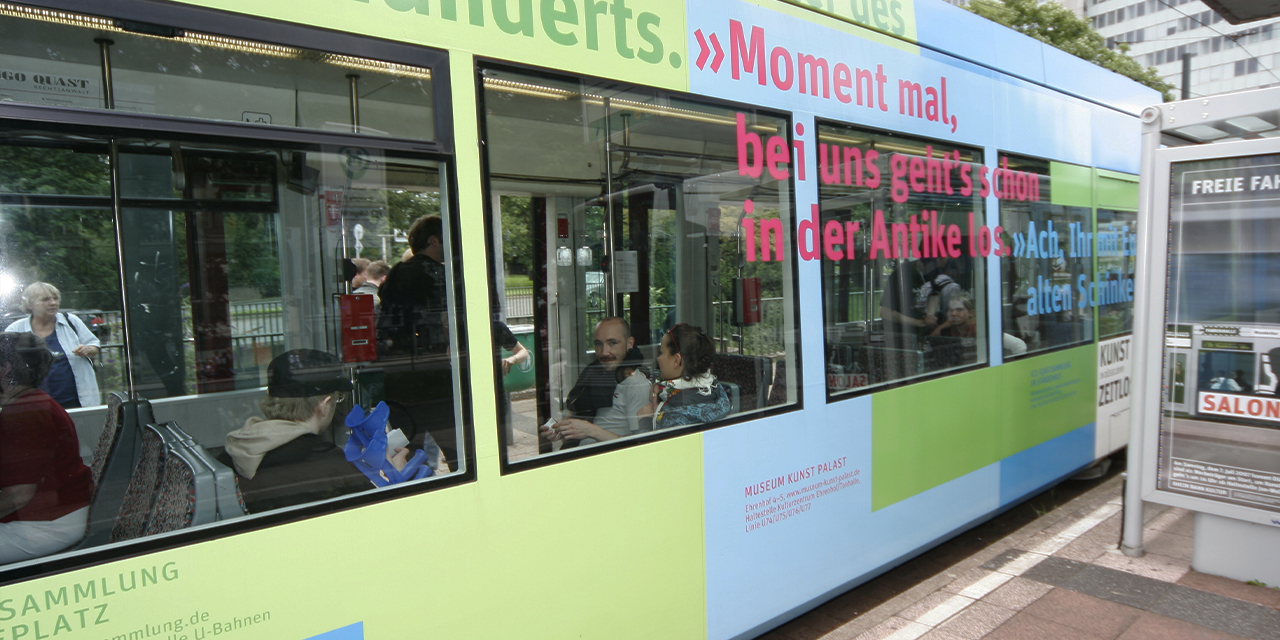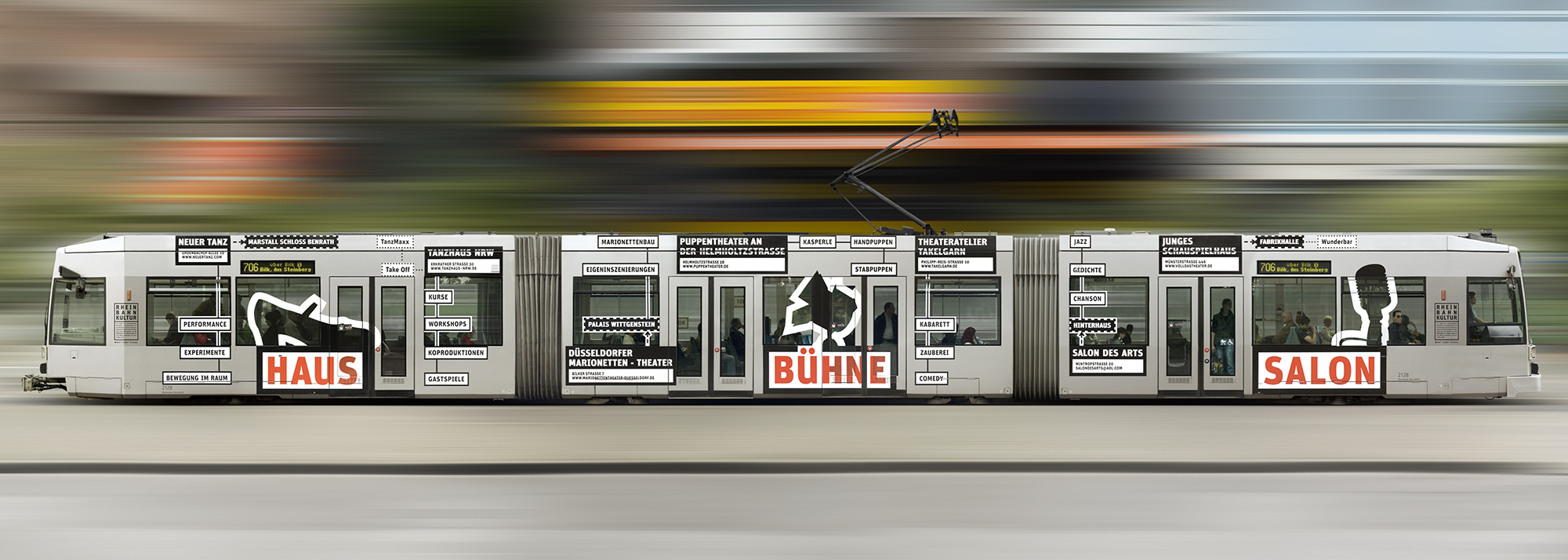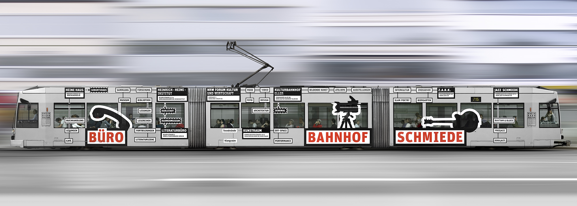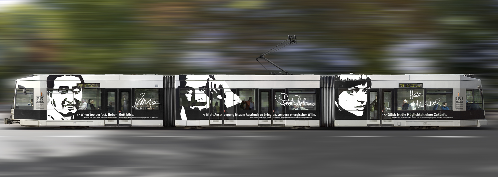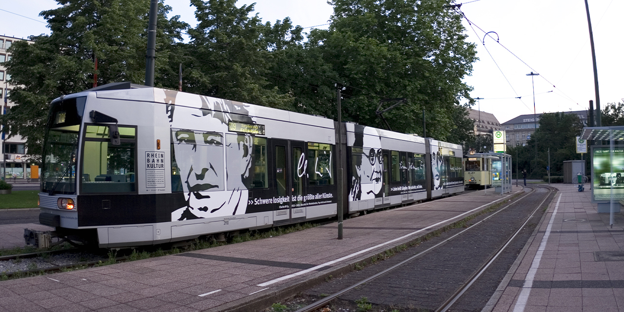 Düsseldorf ist ja bekannt für Kunst und Kultur. Doch neben den großen Museen, Galerien, Akademien und Spielstätten blüht eine bunte Szene junger, wilder und durchaus auch bedeutender Institute. Dafür hat die Rheinbahn ideale Werbeträger. Abfahrt für Vielfalt!