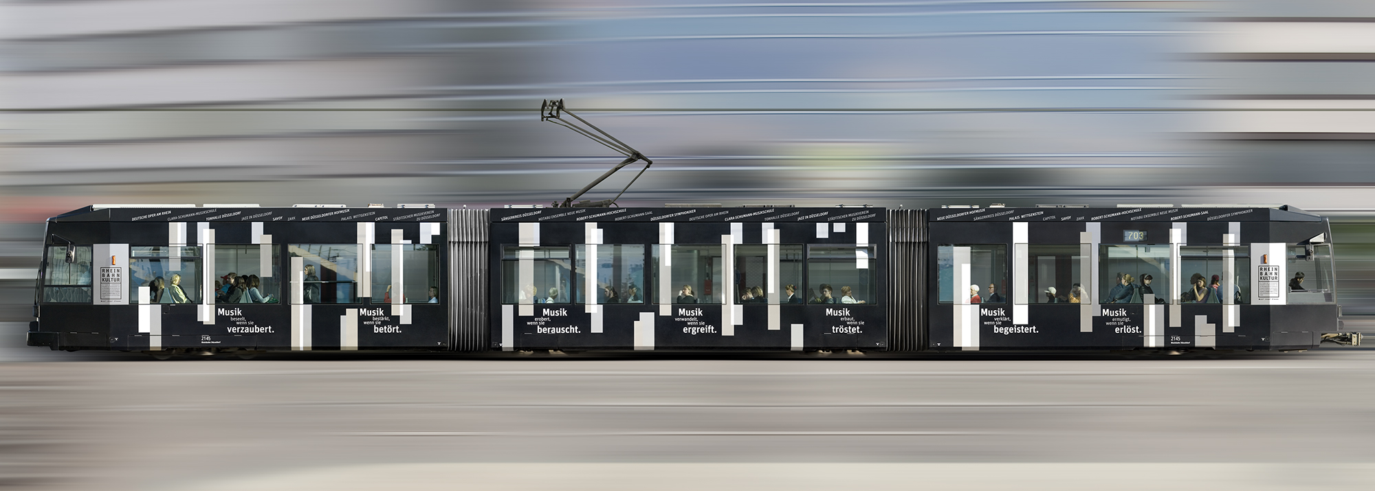 Um die ganze Bandbreite breitenwirksam bekannt zu machen, soll eine Flotte von Straßenbahnen Werbung für das vielfältige Angebot machen.