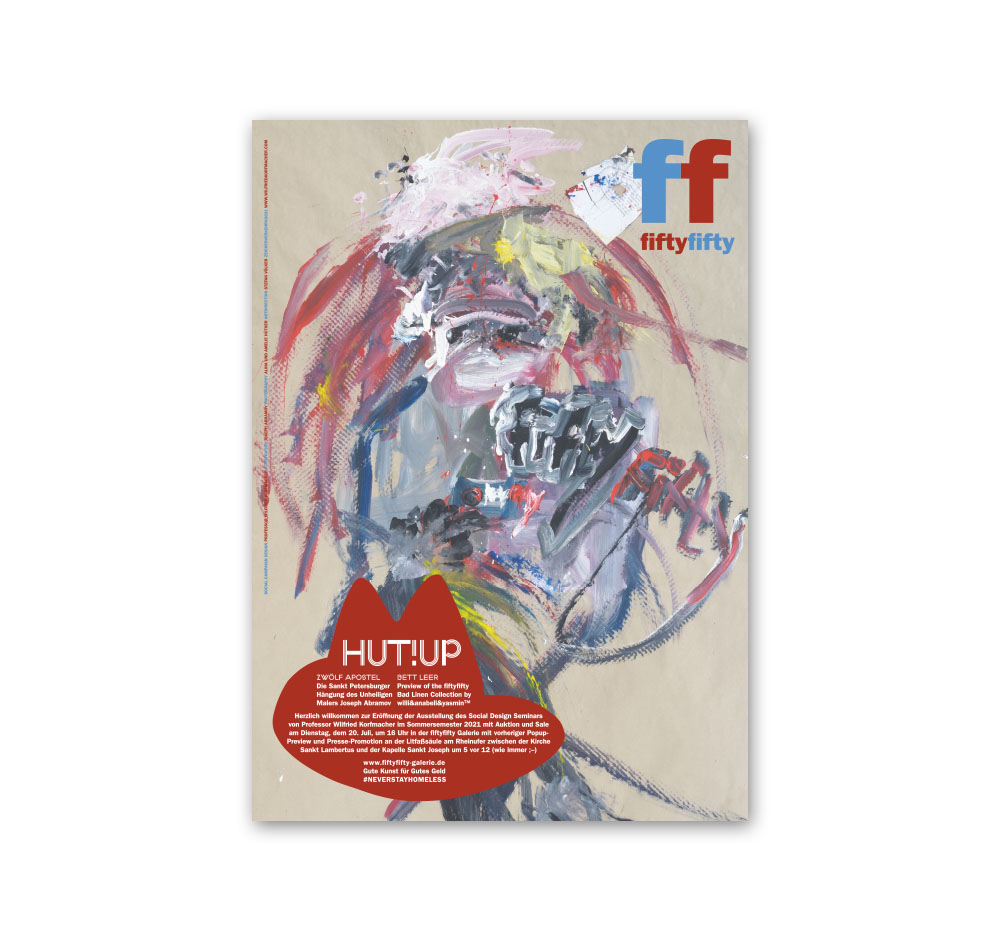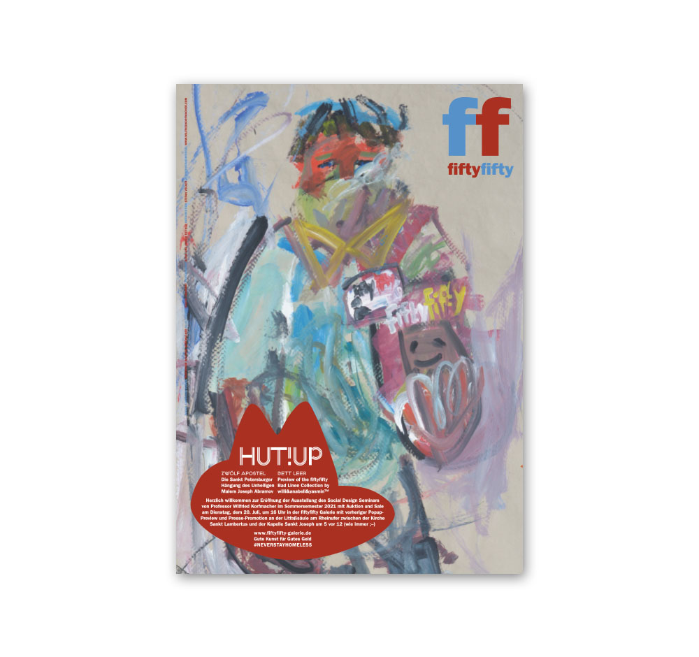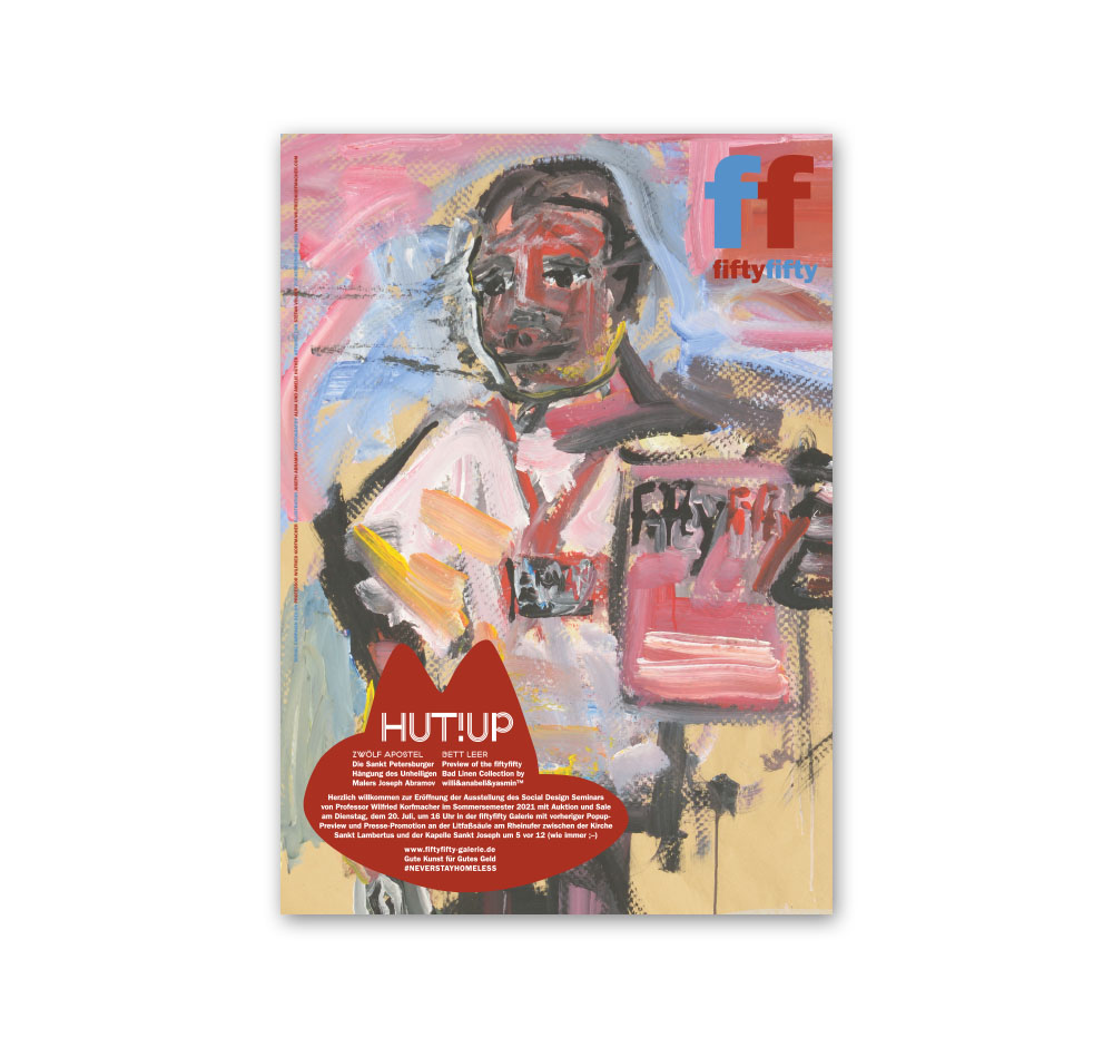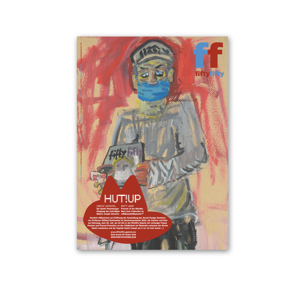 Nach der sozialen Aktion zum „Happy Beuys Day" ziehen wir den Hut vor jenen, die ihr Leben auf der Straße fristen. Und mit der Anspielung auf die Hütten, in denen sie hausen könnten, steht die fiftyfifty Forderung für das Recht auf Wohnen im öffentlichen Raum: „Housing first".