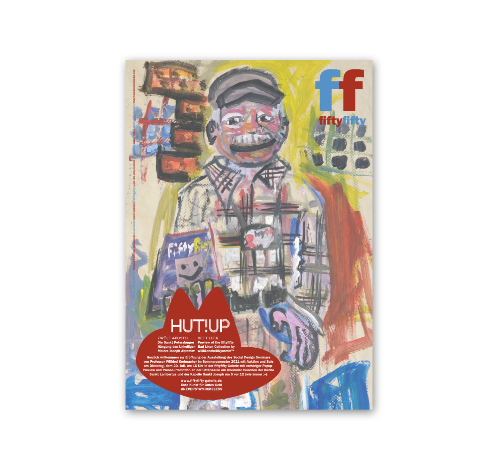 Die Poster bewerben eine Auktion und viele weitere soziale Aktionen. Der Prozess findet im laufenden Sommersemester kein Ende, sondern verharrt in einer Zeitschleife. Good-buy, fiftyfifty! Peace forever!