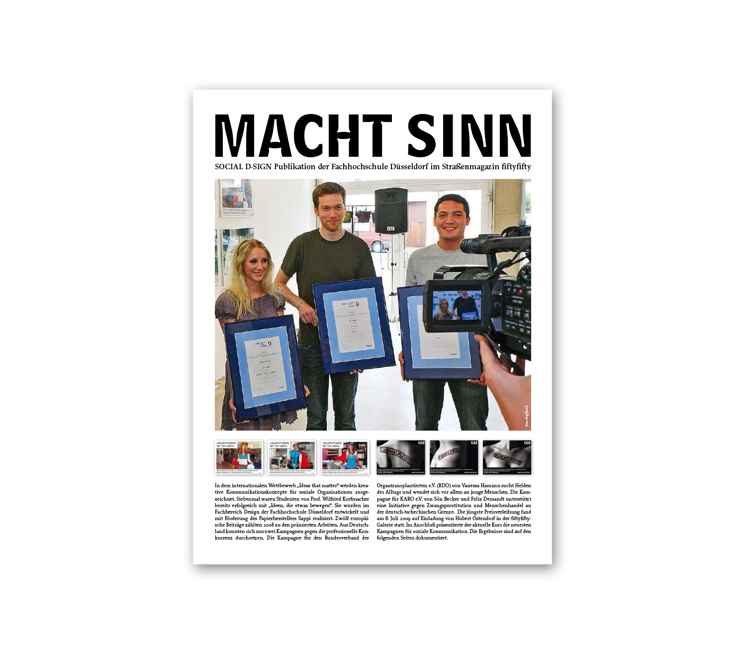 Die Dokumentation von Professor Wilfried Korfmachers Social-Design-Seminar im Sommersemester 2009 erscheint als Sonderbeilage in der August-Ausgabe des Straßenmagazins fiftyfifty.